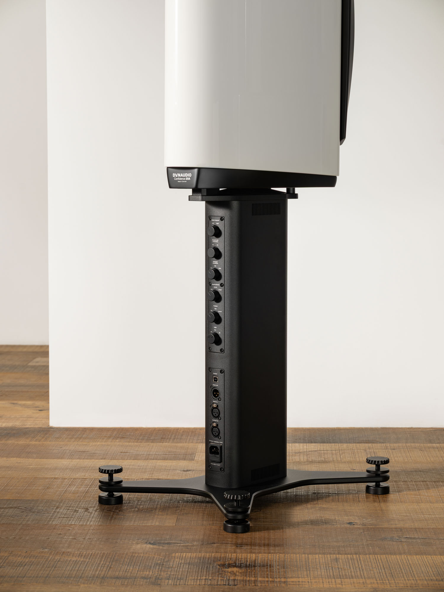Tu se nalaze uravnoteženi analogni i AES3 digitalni XLR priključci, opcije za levo/desno postavljanje, podesive analogne kontrole osetljivosti, kao i zvukovni filteri za balans (podešavanja „Tamno“, „Neutralno“ i „Svetlo“) – preuzeti iz profesionalnih Dynaudio zvučnika. Takođe su prisutne kontrole za konverziju signala i brzinu uzorkovanja, kako bi se sačuvala maksimalna izvorna rezolucija i optimizovao položaj zvučnika („Zid“, „Ugao“, „Slobodno“).